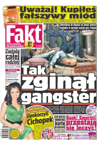 To szopka, nie komisja - zamiast wyjaśniać aferę hazardową, posłowie urządzają sobie w Sejmie przedstawienie; śledczy gubią się w domysłach, co doprowadziło do tajemniczej śmierci gangstera Artura Zirajewskiego; już prawie połowa starszych Polaków rezygnuje z leczenia, bo lekarstwa są za drogie; porażający raport Inspekcji Handlowej - co czwarty miód w sklepach to woda z cukrem; Julia Kamińska po jedenastej w nocy przejechała kilkanaście przystanków; prezes Janusz Filipiak nie chce w Cracovii zatrudniać nieudaczników z zagranicy; uczestników Rajdu Dakar czekają koszmarne etapy.