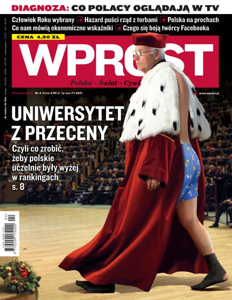 Co zrobić, aby poprawić pozycję polskich uczelni w rankingach; co Polacy oglądają w TV; na nowej ustawie hazardowej mogą stracić wszyscy - prywatni przedsiębiorcy i budżet państwa; czy za pomocą wskaźników, takich jak produkt krajowy brutto, stopa bezrobocia, deficyt, dług publiczny, inflacja, można rzetelnie ocenić kondycję państwa; rozmowa z Blakiem Chandlee, wiceszefem Facebook.com; osiemnastu wpływowych ludzi „Wprost”.