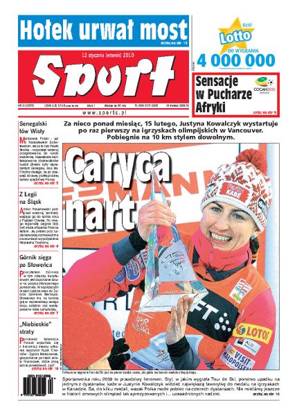 Za nieco ponad miesiąc, 15 lutego, Justyna Kowalczyk wystartuje po raz pierwszy na igrzyskach olimpijskich w Vancouver - jak przedstawiają się szanse medalowe Polki; Grzegorz Kasprzik, bramkarz Lecha Poznań został wykluczony z gry na siedem miesięcy; jaka przyszłość czeka polską kobiecą ligę koszykówki; coraz trudniejsza sytuacja Krzysztofa Hołowczyca w Rajdzie Dakar; Juventus przegrał w Turynie z Milanem 0:3.