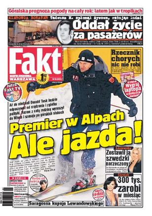 Aż do niedzieli Donald Tusk będzie odpoczywał od rządzenia i zgiełku polityki, razem z całą rodziną wybrał się do Włoch na narty; czy jest szansa na to, by w kolejnych latach nagły atak zimy nie sparaliżował całej Polski; od listopada PO straciło już prawie dziesięć procent poparcia społecznego; narzeczony Joanny Liszowskiej woli interesy od wspólnego wyjazdu na wakacje; nowy tatuaż Davida Beckhama.