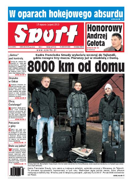 Kadra narodowa pod wodzą Franciszka Smudy wyleciała wczoraj do Tajlandii, gdzie rozegra trzy mecze – pierwszy już w niedzielę z Danią; Komisja ds. Licencji Klubowych w I lidze może cofnąć kilku zespołom prawo gry w tej klasie; Śląsk Wrocław chce kupić napastnika Wisły Kraków Piotra Ćwielonga; jak wyglądają przygotowania krakowskiej Wisły do nowego sezony; FC Barcelona rozpoczęła 2010 rok od niepowodzeń – już na początku stycznia utraciła jedno z sześciu zdobytych w zeszłym roku trofeów.