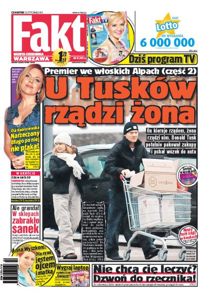 Czy minister zdrowia Ewa Kopacz powinna zostać zdymisjonowana; podczas zimowego wyjazdu na narty do Włoch małżeństwem państwa Tusków rządzi pani Małgorzata; Ryszard Kalisz parkuje swojego jaguara na miejscu dla inwalidów; jak płacić mniej za energię elektryczną; w sklepach w całej Polsce brakuje sanek; Weronika Marczuk, była żona Cezarego Pazury, uważa, że karierą zawdzięcza tylko sobie; wywiad z Anną Wyszkoni.