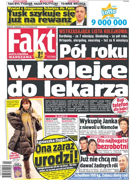 Pół roku czekają Polacy na wizytę u lekarza specjalisty; wywiad z Grzegorzem Schetyną; dramatyczna relacja Polaka z Haiti; Nelly Rokita zamierza wykupić męża z niemieckiego aresztu; Tomasz Kammel i Katarzyna Niezgoda: najbogatsi bezrobotni; Agnieszka Dygant spodziewa się dziecka; Marek Dąbrowski cichym bohaterem Rajdu Dakar; aż trzej polscy skoczkowie znaleźli się w pierwszej szóstce kwalifikacji konkursu w Sapporo.