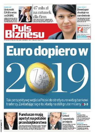 Bankowi traderzy oceniają, że Polska wejdzie do strefy euro dopiero w 2019 roku, w Polsce ubywa funduszy szukających okazji do przejęć, to zapowiedz zwiększonej ilości transakcji; mobilna telewizja w telefonie komórkowym ma w Polsce potencjał – ocenia Info-TV-FM i szykuje umowy dla operatorów; po marnych pierwszych miesiącach 2009 roku widać ożywienie na rynku mieszkań z drugiej ręki.