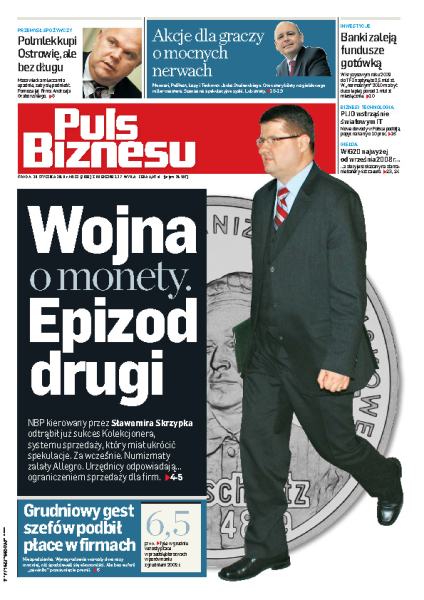 Polska dołączyła do europejskiej inicjatywy Wspólnota Wiedzy i Innowacji – w ramach tego projektu nasze uczelnie i przedsiębiorstwa będą rocznie dostawały co najmniej 120 mln euro; NBP, kierowany przez Sławomira Skrzypka, jest zadowolony z nowego systemu sprzedaży numizmatów „Kolekcjoner”, choć już planuje jego uszczelnienie; w grudniu pensje Polaków wzrosły o 6,5 proc., według ekspertów to tylko jednorazowe zjawisko; nowe, elektroniczne dowody osobiste podniosą rentowność branży IT w Polsce; analitycy przewidują, że Polska będzie pierwszym krajem w regionie, który podniesie stopy procentowe.