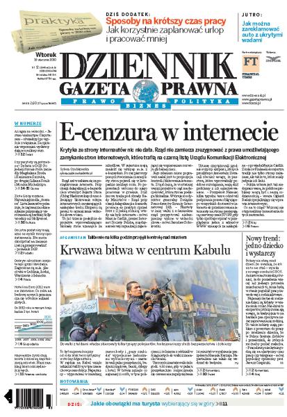 Dziennik Gazeta Prawna – codziennie obiektywne i rzetelne informacje z kraju i ze świata. Piszemy o tym, co dziś ważne i odpowiadamy na Wasze pytania – szczególnie te związane z obecnymi wyzwaniami tj. pandemia, praca zdalna. Na bieżąco wyjaśniamy zmieniające się przepisy. Wspieramy się wyjaśnieniami ministerstw i urzędów. Pomagamy unikać błędów i ostrzegamy, jakie są kary. Ponadto w każdy piątek specjalne magazynowe wydanie Dziennika Gazety Prawnej w całości z tekstami społeczno-ekonomicznymi.