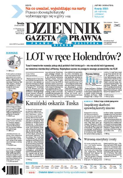 Trzech inwestorów rozważa zakup akcji polskich linii lotniczych – nie ma wśród nich typowanej na inwestora niemieckiej Lufthansy; według Mariusza Kamińskiego Donald Tusk ponosi pełną odpowiedzialność za przeciek z akcji prowadzonej przez CBA w sprawie afery hazardowej; początek ferii zimowych stał się dla fiskusa pretekstem do zaostrzenia akcji ścigania przedsiębiorców niewystawiających paragonów; marcowe podwyżki rent i emerytur będą wyższe niż zakładał rząd; polski system edukacyjny nadal dyskryminuje przewlekle chore dzieci.