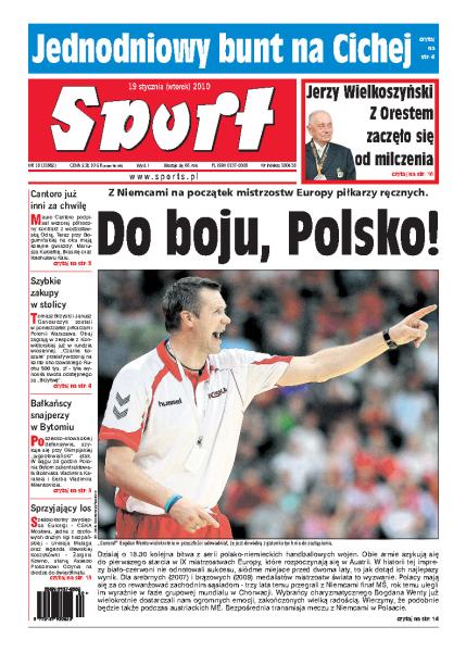 Już dziś o 18:30 polska reprezentacja zmierzy się z Niemcami w pierwszym meczu grupowym mistrzostw Europy w piłce ręcznej; Mauro Cantoro podpisał półroczny kontrakt z Odrą Wodzisław; piłkarze Ruchu Chorzów odmówili wyjazdu na zgrupowanie do Bielska-Białej, to efekt zaległości w wypłacie pensji i meczowych premii; po niedzielnym spotkaniu Milanu z Interem forma Ronaldinho napawa kibiców optymizmem; Maria Szarapowa odpadła z turnieju tenisowego Australian Open.