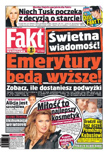 Fakt jest gazetą popularną, szybko wyczerpującą temat, niezależną. W jasny i prosty sposób opisuje wydarzenia i zjawiska społeczne. Przekazuje czytelnikom informacje z szerokiego spektrum zagadnień: od polityki po wydarzenia kulturalne i sport, w sposób pozbawiony sprawozdawczości, oparty na nieszablonowych pomysłach.