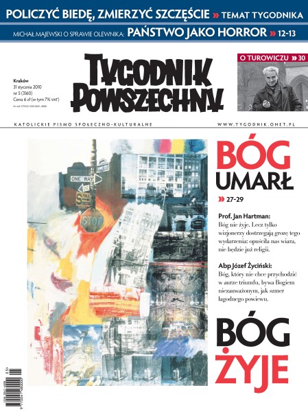 W najnowszym „Tygodniku Powszechnym”: Bóg umarł, Bóg żyje. Dwugłos filozofów: Prof. Jan Hartman: Bóg nie żyje. Lecz tylko wizjonerzy dostrzegają grozę tego wydarzenia: opuściła nas wiara, nie będzie już religii. Abp Józef Życiński: Bóg, który nie chce przychodzić w aurze triumfu, bywa Bogiem niezauważonym, jak szmer łagodnego powiewu.