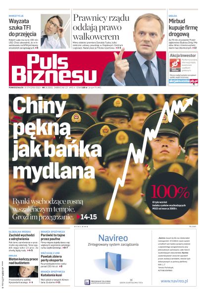 Zamówienia w polskim przemyśle wreszcie przestają mocno spadać; firmy utajniają dane o największym segmencie rynku wędliniarskiego; Wayzata Capital szykuje się do wejścia na rynek zarządzania aktywami - na przejęcie może wydać nawet 100 mln dolarów; do 26 lutego potrwają zapisy na udział w największych targach żywności Alimentarla 2010 w Barcelonie; Jerzy Mirgos walczy o obwodnice Radomia i Pabianic; wśród inwestorów jest moda na Chiny i inne kraje z koszyka emerging markets, jednak czar olbrzymich zysków może prysnąć
