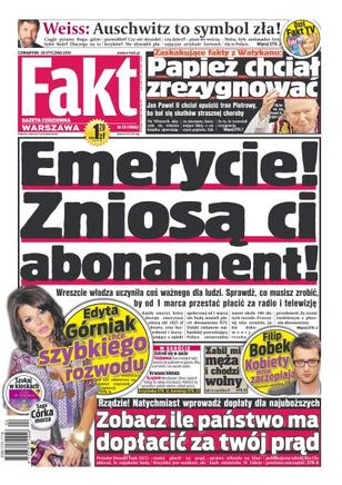 Fakt jest gazetą popularną, szybko wyczerpującą temat, niezależną. W jasny i prosty sposób opisuje wydarzenia i zjawiska społeczne. Przekazuje czytelnikom informacje z szerokiego spektrum zagadnień: od polityki po wydarzenia kulturalne i sport, w sposób pozbawiony sprawozdawczości, oparty na nieszablonowych pomysłach.