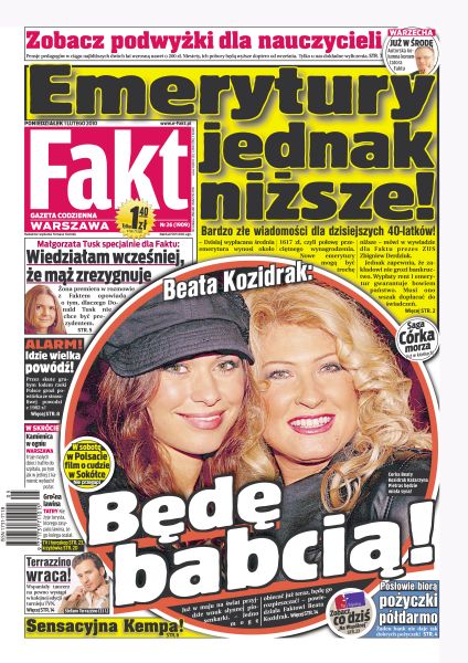 Bank Światowy alarmuje, że Europie grozi załamanie systemów emerytalnych; posłowie rekordziści zdążyli wziąć już z sejmowej kasy po 50 tysięcy złotych pożyczki; Beata Kempa znakomicie prezentuje się w nowym, modnym uczesaniu; pensje pedagogów wzrosną nawet ponad 200 zł na rękę; w maju córka Beaty Kozidrak urodzi synka; w meczu o brązowy medal mistrzostw Europy Polska przegrała z Islandią 26:29; norwescy arbitrzy Arne Kristiansen i Kenneth Abrahamsen sędziowali przeciwko Polakom; w Oberstdorfie Adam Małysz zajął szóste miejsce; Hillary Clinton nosi za duże buty, a Nicolas Sarkozy brudne garnitury.