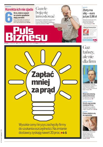 Wysokie ceny i kryzys zachęciły firmy do szukania oszczędności - na zmianie dostawcy zyskają nawet 20 procent; ponad połowa Gazel Biznesu nie planuje w 2010 roku żadnych inwestycji; rabat od Gazpromu pomoże jedynie ograniczyć tempo podwyżek cen błękitnego paliwa; specjalne Strefy Ekonomiczne w kryzysie okazały się mniej atrakcyjne dla inwestorów; w poniedziałek za euro płacono 3,98 - najmniej od ponad roku; sposób inwestowania w fundusze powinien zależeć przede wszystkim od tego, co inwestor tak naprawdę chce osiągnąć.