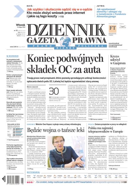 Dziennik Gazeta Prawna – codziennie obiektywne i rzetelne informacje z kraju i ze świata. Piszemy o tym, co dziś ważne i odpowiadamy na Wasze pytania – szczególnie te związane z obecnymi wyzwaniami tj. pandemia, praca zdalna. Na bieżąco wyjaśniamy zmieniające się przepisy. Wspieramy się wyjaśnieniami ministerstw i urzędów. Pomagamy unikać błędów i ostrzegamy, jakie są kary. Ponadto w każdy piątek specjalne magazynowe wydanie Dziennika Gazety Prawnej w całości z tekstami społeczno-ekonomicznymi.