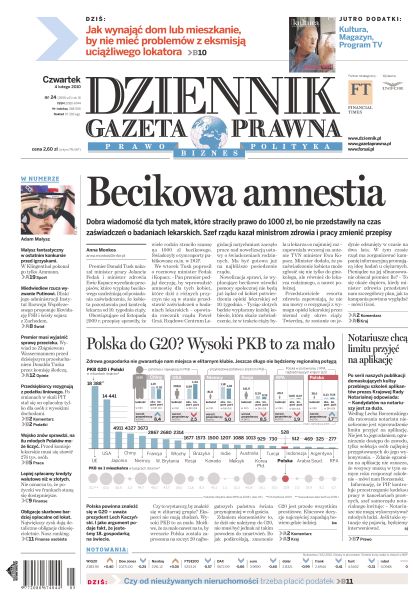 Dziennik Gazeta Prawna – codziennie obiektywne i rzetelne informacje z kraju i ze świata. Piszemy o tym, co dziś ważne i odpowiadamy na Wasze pytania – szczególnie te związane z obecnymi wyzwaniami tj. pandemia, praca zdalna. Na bieżąco wyjaśniamy zmieniające się przepisy. Wspieramy się wyjaśnieniami ministerstw i urzędów. Pomagamy unikać błędów i ostrzegamy, jakie są kary. Ponadto w każdy piątek specjalne magazynowe wydanie Dziennika Gazety Prawnej w całości z tekstami społeczno-ekonomicznymi.
