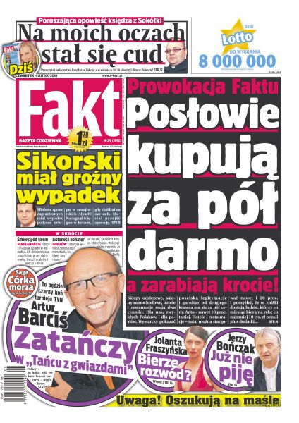 Grzegorz Schetyna bronił się przed posądzeniem o udział w aferze hazardowej; posłowie pokazując poselski mandat i dostają nawet 50-procentowe zniżki w sklepach; po opuszczeniu aresztu Lew Rywin korzysta z uroków dostatniego życia; szef resortu infrastruktury Cezary Grabarczyk wozi się do pracy klimatyzowaną limuzyną z kierowcą; szczęśliwy finał tułaczki niedźwiedzicy z Podkarpacia; poruszająca relacja świadka przemiany hostii w ciało Chrystusa; Jolanta Fraszyńska nie ma szczęścia w miłości; na dziewięć dni przed olimpijskim startem w Vancouver Adam Małysz był drugi w zawodach Pucharu Świata; Grzegorz Lato stroi się na losowanie.