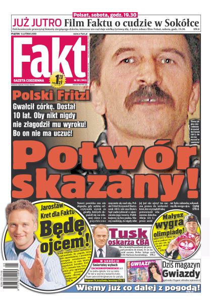 Donald Tusk przyznał, że kontakty Chlebowskiego i Drzewieckiego z rekinami hazardu były gorszące; poseł żyje za darmo dzięki całej masie przywilejów - prawie cała poselska pensja zostaje na koncie; tajemnicza wyprawa Bronisława Komorowskiego na wieś; zdesperowany rolnik miał dość zasp pod domem - chwycił za siekierę, bo nie odśnieżyli mu drogi; muzyk De Mono uciekł przed zimą i spędził z rodziną dwa miesiące nad Morzem Karaibskim; Adam Małysz zapowiada, że powalczy o olimpijskie złoto; w warszawskiej Sali Kongresowej odbędzie się losowanie grup eliminacyjnych; Marcin Gortat chce przez kilka dni odpocząć od gry w NBA.