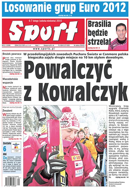 Powalczyć z Kowalczyk – polska biegaczka po raz kolejny stanęła na podium zawodów Pucharu Świata; w niedzielę stolica Europy będzie w Polsce – w Warszawie czeka nas losowanie grup Euro 2012; Polonia Bytom trenuje na zgrupowaniu w Turcji, a Ruch Chorzów się wzmacnia nowymi piłkarzami; w Anglii kolejny mecz na szczycie – Arsenal zmierzy się z Chelsea o być albo nie być w walce o mistrzowski laur; w trzy lata przybyło mu 20 kg mięśni – Tomasz Adamek przed walką z Jasonem Estradą; hokeiści GKS-u Tychy w 11 minut zapewnili sobie zwycięstwo.