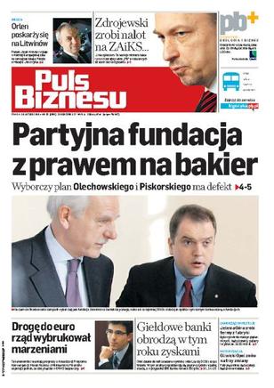 Orlen narzeka na litewskie koleje do tego stopnia, że napisze do Brukseli skargę o psuciu wolnego rynku; Jelenia Góra inwestuje wielkie pieniądze w baseny termalne; podstawowym filarem finansowania kampanii wyborczej Andrzeja Olechowskiego jest fundacja, która nagminnie łamie prawo; Wrocław dogadał się z Mostostalem, spółka ma zapłacić miastu odszkodowanie w wysokości 20,5 mln zł; minister Bogdan Zdrojewski obiecuje rzetelną inspekcję w ZAiKS; po słabym 2009 roku sektor bankowy powinien w tym roku wyraźnie zwiększyć zyski.