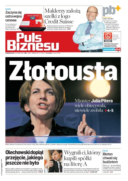 Ryszard Krauze przekonuje, że centralizacja finansów grupy Bioton świetnie im zrobi; Julia Pitera udowadnia, że prace legislacyjne mogą się cofać; rywale po obniżce stawek przez Pocztę Polską mówią, że poleje się krew; Credit Suisse uruchamia w Warszawie dom maklerski; EM Lab przejął część europejskiego holdingu reklamowego; jeszcze kilka miesięcy temu mało kto wierzył w drugie dno bessy - dziś zwolenników czarnego scenariusza przybywa; spółki z początku listy emitentów dały zarobić od rynkowego dołka dużo więcej niż te z końca; aby zwiększyć szanse na uzyskanie środków z faktoringu, trzeba sprawdzić swoich kontrahentów.