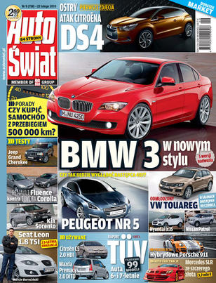 BMW 3: kolejna odsłona małej limuzyny z Monachium; Porsche 911 GT3 R Hybrid - ekologiczny supersportowiec; samochody używane: Citroën C5 - bardzo komfortowy, ale kosztowny w obsłudze; czy warto interesować się autami z dużym przebiegiem; Anliker SLR 999 Red Gold Dream - złote marzenie Szwajcara. Dodatek: Market.