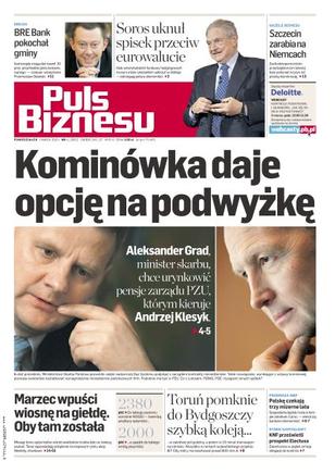 Aleksander Grad, minister skarbu, chce urynkowić pensje zarządu PZU, którym kieruje Andrzej Klesyk; jest sposób na podniesienie pensji szefów państwowych firm ponad ustawowe minimum; rynkowi ekonomiści przekonują, że gospodarka będzie przyspieszać; pierwsze przetargi na projekt wart ponad 800 mln zł ruszą w 2010 roku; biznes z gminami i miastami ma przynosić do 20 proc. przychodów pionu BRE Bank; szczecińskie firmy zarabiają także na kontraktach z sąsiadami zza Odry; miesiąc temu analitycy wieścili przecenę WIG20 o około 10 proc. - teraz w ich prognozach nie ma już takiej zgodności.