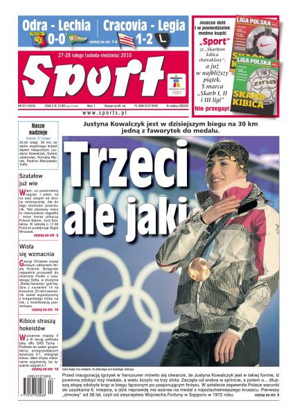 Justyna Kowalczyk jest w dzisiejszym biegu na 30 km jedną z faworytek do medalu; prezydent Lech Kaczyński w swej rezydencji w Wiśle podjął śniadaniem Adama Małysza, któremu towarzyszyła żona Izabela; Agnieszka Gąsienica-Daniel za cztery lata w Soczi chce walczyć o medale; w Wodzisławiu były głośne transfery, wielkie nadzieje i oczekiwania, a został tylko punkt; Fabio Capello ma ostatnio do rozstrzygnięcia problemy natury nie tylko sportowej; zdziesiątkowany karami Inter, bez zdyskwalifikowanego Jose Murinho na ławce, staje przed trudnym zadaniem w Udine; kibice krakowskiej Wisły Can Pack muszą poczekać ze świętowaniem awansu do Final Four.