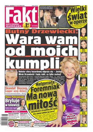 Bohater afery hazardowej odgraża się mówiąc: - Jestem Mirek Drzewiecki i będę robił, co tylko zechcę; Ilona Felicjańska bardzo chętnie opowiada w mediach o swoich ostatnich przejściach; na lekcję z Andrzejem Lepperem przyszło do szkolnej auli ponad 150 uczniów; plotka głosi, że nowy partner Małgorzaty Foremniak to sporo młodszy od niej biznesmen; Legia grając w dziesiątkę pokonała Cracovię; Odra pomimo ściągnięcia dziesięciu piłkarzy, z Lechią nie wygrała; Robert Kubica bardzo chwali atmosferę w swoim zespole; Anna Barańska zdecydowała się na rozbieraną sesję dla „Playboya”; Justyna Kowalczyk w biegu na 30 km stanie przed szansą zdobycia trzeciego medalu w Vancouver.