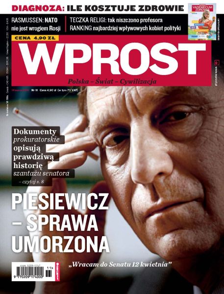 Prawdziwa historia szantażu Krzysztofa Piesiewicza; rozmowa z Andersem Foghem Rasmussenem, sekretarzem generalnym NATO; jak SB niszczyło Zbigniewa Religę; ile kosztuje służba zdrowia; ranking najbardziej wpływowych kobiet polskiej polityki; dodatek specjalny: Vademecum zdrowia - minerały i witaminy.