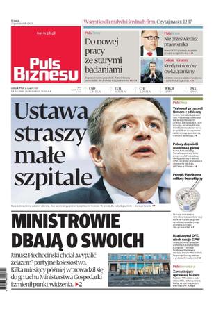 Nawet GIODO przyznaje, że polskie przepisy są rygorystyczne; jakie zmiany czekają kredytobiorców; Bartosz Arłukowicz, minister zdrowia, chce zapewnić pacjentom kompleksowe leczenie – o wyrok dla małych placówek – alarmuje branża; prawo, które działa jak automat, wymuszając nakładanie kar niewspółmiernych do winy, jest niezgodne z konstytucją – orzekli sędziowie; Polacy dopieścili wiedeńską giełdę; firma nr 1 na wartym 400 mln zł rynku serków wiejskich nie wydała ani grosza na reklamę sztandarowego produktu, a Polacy i tak go pokochali; rząd zepsuł OFE, niech ratuje GPW; niektóre TFI walczą o zyski tak zaciekle, że łamią zasady, kładąc na szali bezpieczeństwo klientów; jak ministrowie dbają o swoich.