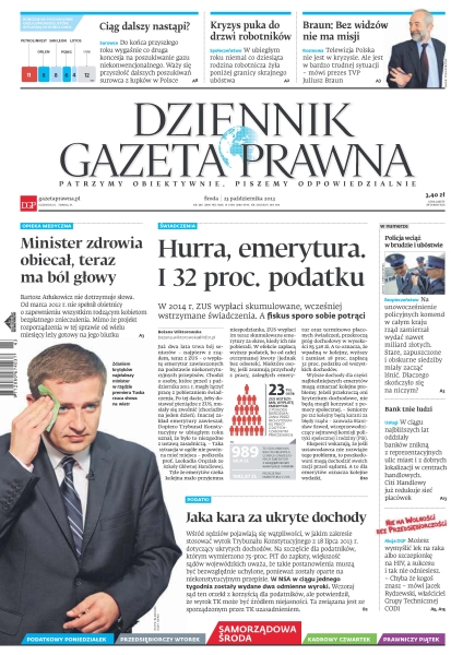 Dziennik Gazeta Prawna – codziennie obiektywne i rzetelne informacje z kraju i ze świata. Piszemy o tym, co dziś ważne i odpowiadamy na Wasze pytania – szczególnie te związane z obecnymi wyzwaniami tj. pandemia, praca zdalna. Na bieżąco wyjaśniamy zmieniające się przepisy. Wspieramy się wyjaśnieniami ministerstw i urzędów. Pomagamy unikać błędów i ostrzegamy, jakie są kary. Ponadto w każdy piątek specjalne magazynowe wydanie Dziennika Gazety Prawnej w całości z tekstami społeczno-ekonomicznymi.