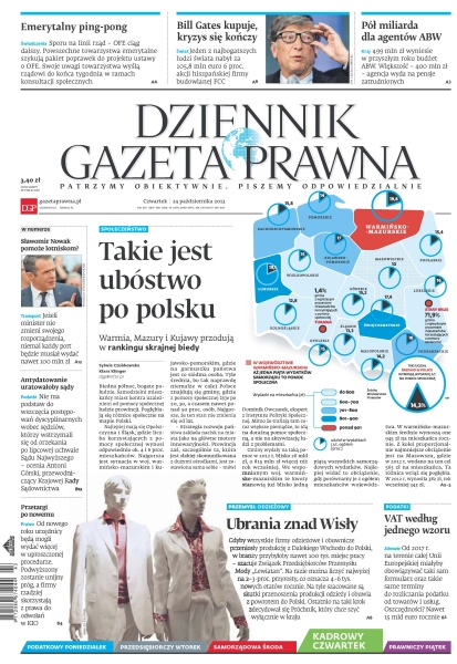 Dziennik Gazeta Prawna – codziennie obiektywne i rzetelne informacje z kraju i ze świata. Piszemy o tym, co dziś ważne i odpowiadamy na Wasze pytania – szczególnie te związane z obecnymi wyzwaniami tj. pandemia, praca zdalna. Na bieżąco wyjaśniamy zmieniające się przepisy. Wspieramy się wyjaśnieniami ministerstw i urzędów. Pomagamy unikać błędów i ostrzegamy, jakie są kary. Ponadto w każdy piątek specjalne magazynowe wydanie Dziennika Gazety Prawnej w całości z tekstami społeczno-ekonomicznymi.