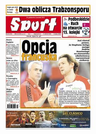 Jest niemal pewne, że Stephane Antiga zastąpi Andreę Anastasiego na stanowisku szkoleniowca reprezentacji siatkarzy; w lidze tureckiej przeciwnik Legii bramki zdobywa z trudem, co innego w europejskich rozgrywkach; Robert Lewandowski trafił na czołówki większości sportowych gazet w Niemczech i Anglii; druga porażka Agnieszki Radwańskiej podczas mistrzostw WTA w Stambule; ZAKSA Kędzierzyn-Koźle okazała się mało gościnna dla zespołu ze Stambułu; odległe lokaty Anny Leśniewskiej i Katarzyny Ostapskiej ma nam dzisiaj osłodzić wieczorny występ Krzysztofa Zwarycza.