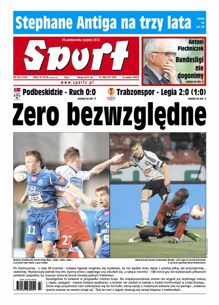 Tabela grupy J informuje Europę, że mistrzowie Polski to chłopcy do bicia; na postawę Realu Madryt i Barcelony w Champions League decydujący wpływ miało sobotnie „gran derbi”; zatrzymanie Frana Vazqueza i Zorana Dragicia powinno być kluczem do sukcesu Stelmetu Zielona Góra w dzisiejszym wyjazdowym meczu z Unicają Malaga; Asseco Resovia od cennego zwycięstwa w Paryżu rozpoczęła zmagania w Lidze Mistrzów; Andrea Anastasi został zwolniony z posady trenera męskiej reprezentacji – jego miejsce zajął Stephane Antiga, który poprowadzi biało-czerwonych wraz z Philippem Blainem; Agnieszka Radwańska przegrała w Stambule trzeci