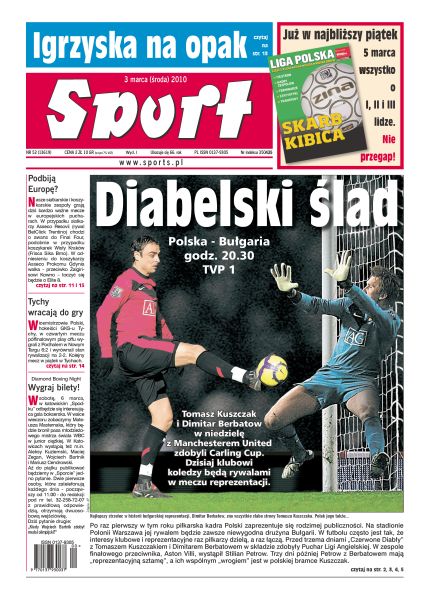 Tomasz Kuszczak i Dimitar Berbatow w niedzielę z Manchesterem United zdobyli Carling Cup; Franciszek Smuda ujawnił prawdopodobny skład na mecz z Bułgarią; w lidze bułgarskiej dokonano w tym sezonie 14 zmian trenerów - ostatni stracił pracę były znakomity napastnik, Ljubosław Penew; Diego Maradona spóźnił się na konferencję prasową, gdyż nie chciało mu się wychodzić z wanny; Asseco Resovia stanie dziś naprzeciw najlepszej drużyny klubowej świata - czy BetClick Trentino jest w ogóle do pokonania; oprócz wspaniałych wyników, wielkich zwycięstw i niezapomnianych emocji, igrzyska jak zawsze dostarczyły wielu pozasportowych wrażeń.