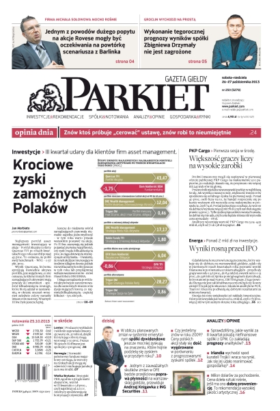 Największy w Polsce newsroom gospodarczy zbiera, analizuje i zgłębia dla Państwa najważniejsze informacje ze świata finansów. Codzienne wydanie „Parkietu”, sześć dni w tygodniu, to kilkadziesiąt artykułów o emitentach, instytucjach finansowych, gospodarce. To również opinie, felietony i wywiady z najważniejszymi ludźmi krajowej i globalnej finansjery.