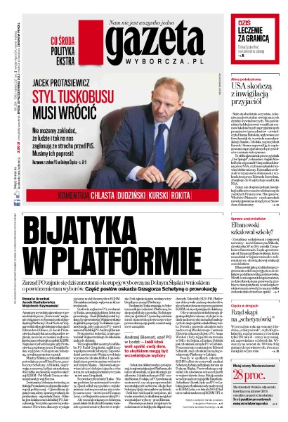 Zarząd PO zajmie się dziś zarzutami o korupcję wyborczą na Dolnym Śląsku i wnioskiem o powtórzenie tam wyborów – część posłów oskarża Grzegorza Schetynę o prowokację; realne dochody polskich gospodarstw domowych spadły o ponad 5 procent; Rumunia przy wsparciu Polski chce wejść do strefy Schengen, ale szanse ma niewielkie, ponieważ Zachód blokuje otwarcie granic ze względu na ogromną korupcję i strach przed imigrantami.