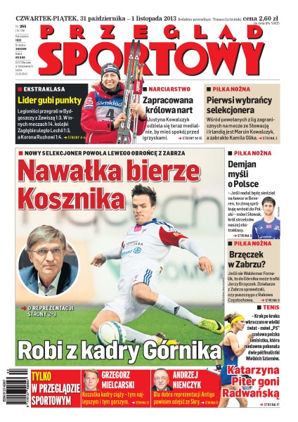 Adam Nawałka na pierwsze zgrupowanie kadry powoła Rafała Kosznika z Górnika Zabrze; wśród piłkarzy powołanych z lig zagranicznych na mecze ze Słowacją i Irlandią jest Marcin Kowalczyk, a zabrakło Kamila Glika; Justyna Kowalczyk udziela się teraz medialnie, by mieć spokój przed igrzyskami.