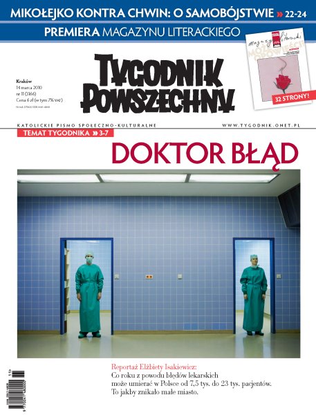 W najnowszym "Tygodniku Powszechnym": Błędy lekarskie - dlaczego co roku życie traci przez nie więcej ludzi niż w wypadkach samochodowych? Reportaż i rozmowa z członkiem Naczelnej Izby Lekarskiej. W numerze także: Rodzina, małżeństwo, sakrament - "Ślub kościelny" to nie wszystko; Chile: polityczny wstrząs w cieniu trzęsienia ziemi; Chwin i Mikołejko o samobójstwie; Oskary 2010; tetris - gra, która stała się symbolem.