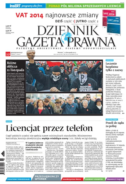Podczas Marszu Niepodległości zorganizowanego przez narodowców doszło do awantur – spłonęły dwa samochody, policyjna budka strażnicza przy ambasadzie rosyjskiej, a kilku policjantów zostało rannych; wpisywanie ocen z zajęć, których nie było, sprzedawanie egzaminów to norma, co więcej – żadnej szkoły za to nie zlikwidowano; w I połowie tego roku nasze firmy zapłaciły ponad 1 mln zł odszkodowań za używanie nielegalnego oprogramowania.