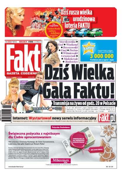 Dziś wieczorem na Wielkiej Gali Faktu z okazji dziesięciolecia zaśpiewają m. in. Justyna Steczkowska, Enej, Maryla Rodowicz i Maciej Maleńczuk; kolejny raz w czasie świętowania Dnia Niepodległości w Warszawie doszło do awantur; Manchester United chce trenować w polskim ośrodku w Gniewinie.