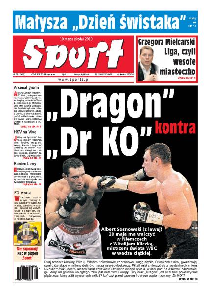 To jest prawdziwa sensacja – Albert Sosnowski zmierzy się z mistrzem świata wagi ciężkiej organizacji WBC, Ukraińcem Witalijem Kliczką; po raz piąty z rzędu Adam Małysz zajął 2. miejsce w konkursie skoków narciarskich, po raz kolejny przegrał z Simonem Ammannem; czy Ruch Chorzów będzie w stanie zwyciężać bez kontuzjowanego Andrzeja Niedzielana; Górnik Zabrze informuje, że znalazł właściwego kandydata na dyrektora sportowego; analiza przedmeczowa spotkań piłkarskiej Ligi Mistrzów.