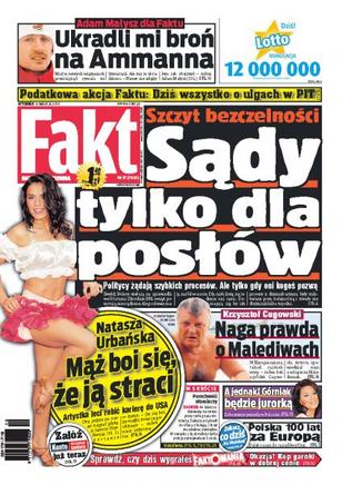 Adam Małysz nie skakał w Lahti z nowymi wiązaniami, bo ktoś mu je ukradł; według ekspertów partia kierowana przez braci Kaczyńskich nie ma już tej woli walki co w 2005 roku i dlatego drepcze w miejscu; posłowie chcą, aby ich procesy z dziennikarzami kończyły się w kilka tygodni; w Polsce ceny usług i towarów są zbliżone do tych z Zachodu, ale zarobki mamy o cztery razy mniejsze; jak Ryszard Kalisz pielęgnuje miłość w swoim nowym związku; Krzysztof Cugowski, lider Budki Suflera opowiada o urlopie spędzonym na Malediwach.