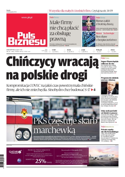 Kompromitacja COVEC na jakiś czas powstrzymała chińskie firmy, ale ich nie zniechęciła, Sinohydro chce budować S-17; prawnicy szukają nisz i nowych form płatności, przedsiębiorcy są oporni; w chmurze dane łatwiej ochronić niż na własnych serwerach firmy; program de minimis szerszy i dłuższy; Unia woli parówki od śledzi w puszce.