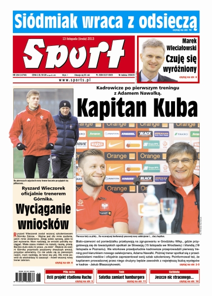 Kadrowicze po pierwszym treningu z Adamem Nawałką; Ryszard Wieczorek oficjalnie trenerem Górnika; Podbeskidzie Bielsko-Biała – „Górale” stracili w tym sezonie połowę goli w trzech meczach; jak wychować nową Radwańską i Janowicza; zawodniczki Wisły Can-Pack Kraków i CCC Polkowice same sobie skomplikowały sytuację.