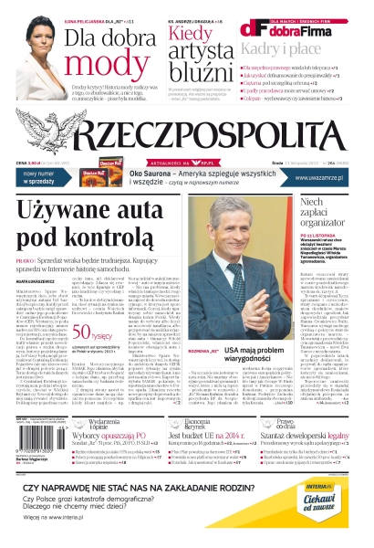 Używane auta pod kontrolą – sprzedaż wraka będzie trudniejsza, kupujący sprawdzi w Internecie historię samochodu; USA mają problem wiarygodności; Warszawski ratusz chce obciążyć kosztami zniszczeń w czasie Marszu Niepodległości Witolda Tumanowicza, organizatora zgromadzenia; wyborcy opuszczają PO; jest budżet UE na 2014 rok; szantaż deweloperski legalny – precedensowy wyrok sądu apelacyjnego.