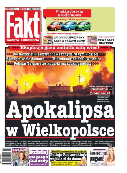 Apokalipsa w Wielkopolsce – koparka uszkadza gazociąg, i wybuchło prawdziwe piekło; nowe uprawnienia dla skarbówki – policja Rostowskiego wejdzie do domu; Rozenek straci program – producenci chcą zdjąć z anteny jej show; Waśniewska ma plan, jak wyjść z więzienia; żaba w ogórkach – pływała na spodzie słoika.