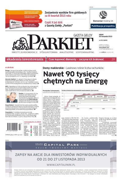Gazeta Giełdy i Inwestorów Parkiet przyspiesza publikację e-wydania. Od poniedziałku, już od godz. 20.00, można kupić i przeczytać e-wydanie Parkietu, które w wersji papierowej ukaże się dopiero następnego dnia. Parkiet jest więc najświeższą gazetą finansową w Polsce.