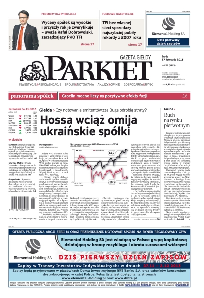 Największy w Polsce newsroom gospodarczy zbiera, analizuje i zgłębia dla Państwa najważniejsze informacje ze świata finansów. Codzienne wydanie „Parkietu”, sześć dni w tygodniu, to kilkadziesiąt artykułów o emitentach, instytucjach finansowych, gospodarce. To również opinie, felietony i wywiady z najważniejszymi ludźmi krajowej i globalnej finansjery.